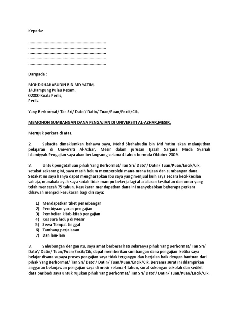 Related : Contoh Surat Mohon Bantuan Kewangan Dari Yb : Surat mohon bantuan yb mp3 & mp4..