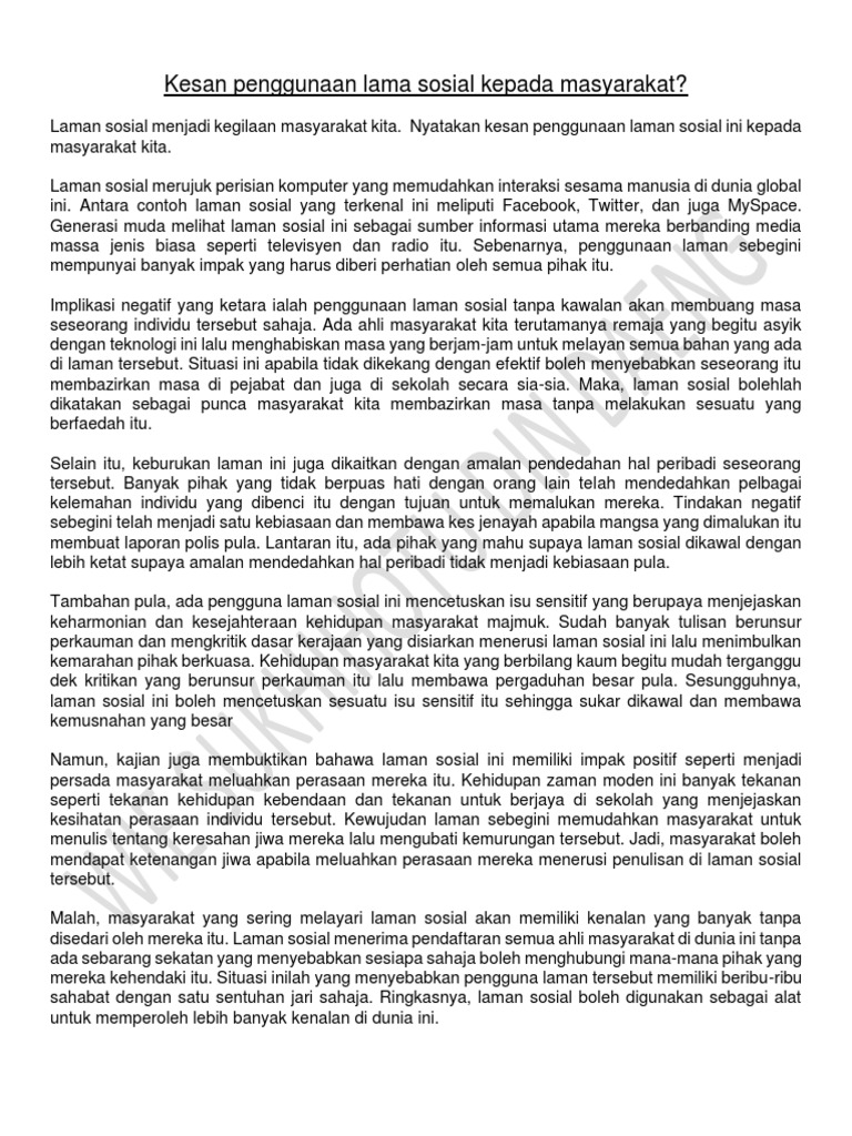 Related : Kesan Buruk Penggunaan Laman Media Sosial / Contoh karangan kesan negatif penyalahgunaan media internet kepada murid sekolah..