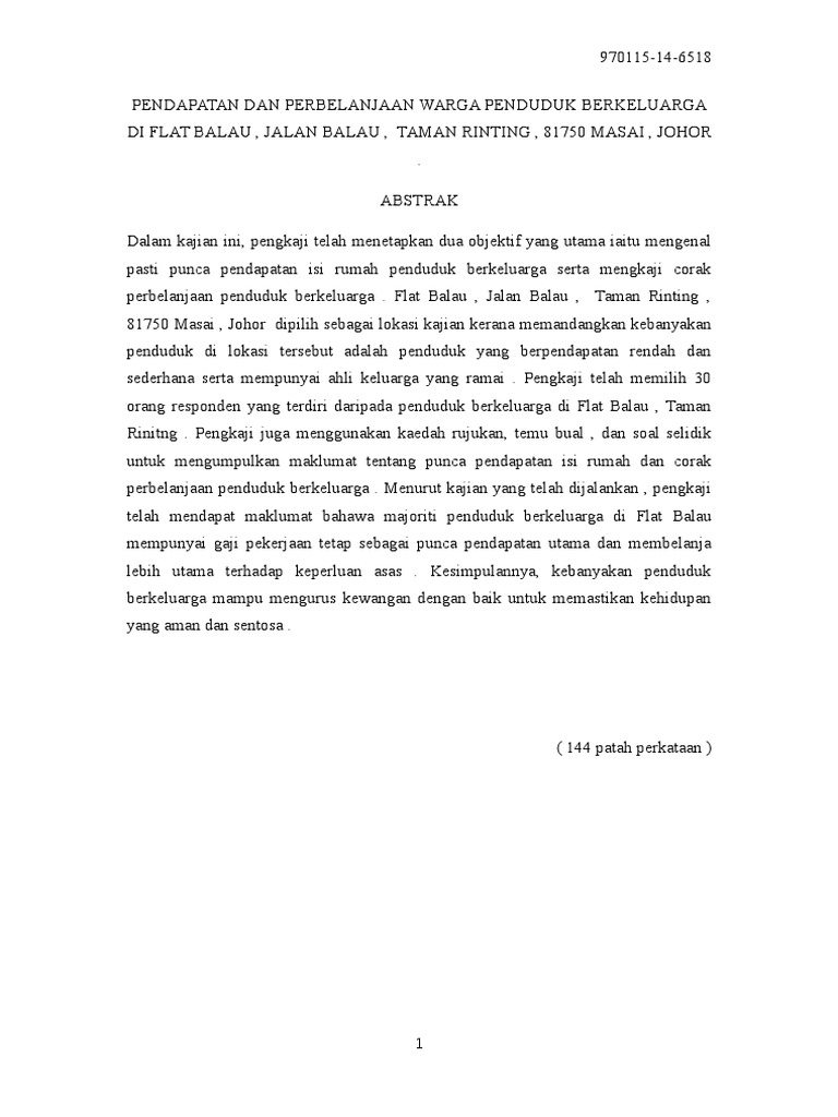 Pengkaji juga menggunakan kaedah rujukan perpustakaan bagi mendapatkan maklumat. Pandangan golongan muda sangat penting kepada pengkaji untuk mengetahui pendapat mereka tentang biskut tradisonal ini. 1 1.1 abstrak adat menyambut kelahiran bayi dalam kalangan masyarakat cina di taman maju satu, sungai jelok, kajang. Save save kerja kursus pengajian am penggal 2 stpm 2014 for later. Pbs pengajian am stpm 2013 penggal 2 contoh untuk dijadikan panduan. Pengkaji mendapatkan maklumat bahan rujukan daripada perpustakaan awam negeri pahang dan perpustakaan di smk paya besar kuantan. Contoh abstrak, isi kandungan, penghargaan kerja kursus pengajian am. Tajuk kerja kursus pengajian am 2020. Manual kerja kursus ini disusun bagi membantu calon untuk menghasilkan kerja kursus bagi mata pelajaran pengajian am. Antara bahan rujukan yang sesuai termasuklah buku rujukan pengajian am, majalah, surat khabar dan melayari internet. Abdul munir ismail yang bertajuk adat perkahwinan masyarakat jawi peranakan india islam di pulau pinang. Bersyukur kehadrat allah s.w.t kerana dengan limpah kurnianya dapat saya menyiapakan kerja kursus pengajian am iaitu tugasan pentaksiran berasaskan sekolah (pbs). 1 kajian terhadap perkhidmatan makanan di kantin smjk yu hua, kajang abstrak kertas kursus bertajuk kajian terhadap perkhidmatan makanan di kantin smjk yu hua, kajang.
